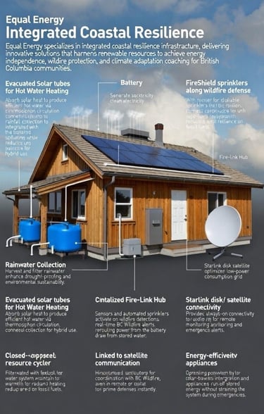 Operational Independence: Builds self-reliant systems resilient to storms and outages, incorporating fire-smart features and rainwater harvesting for comprehensive climate adaptation.