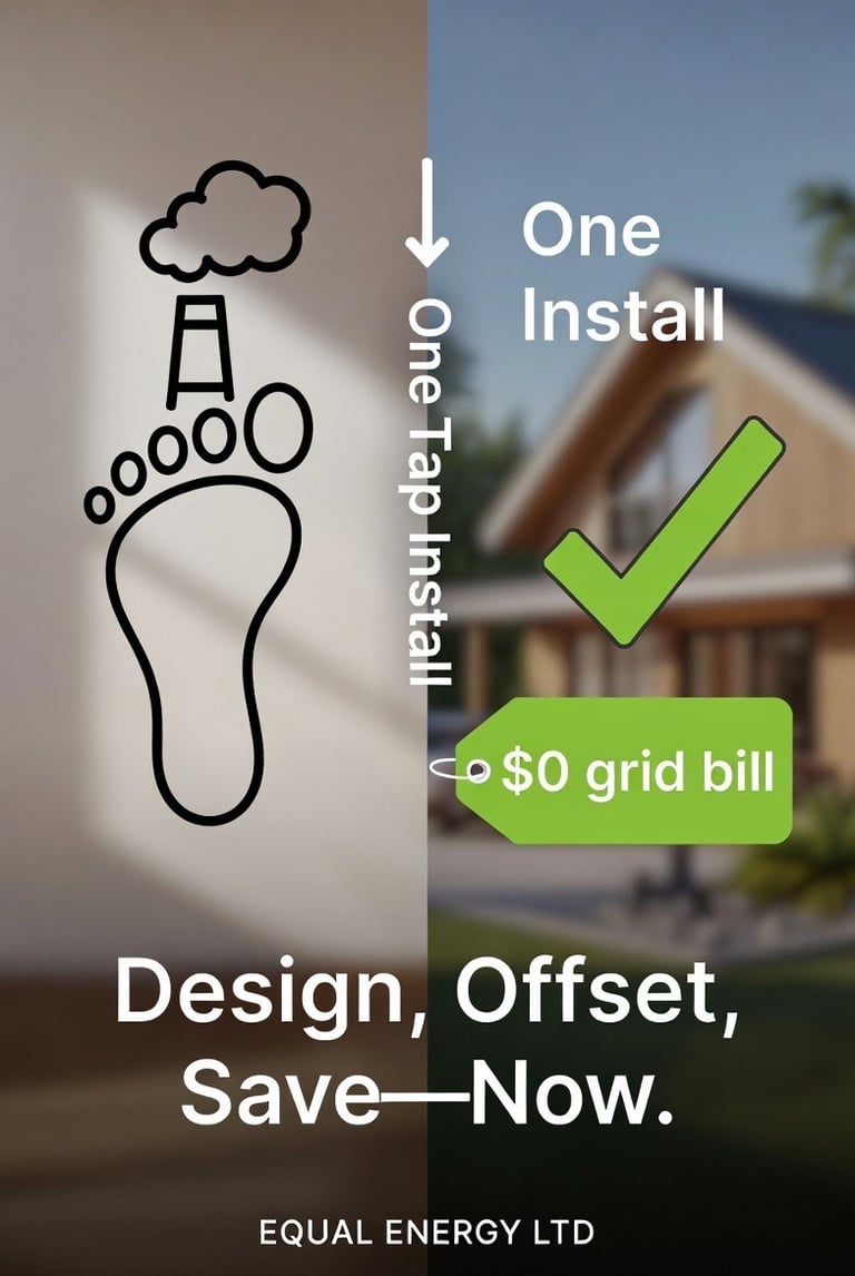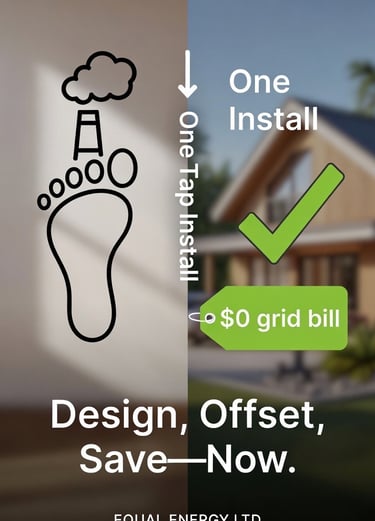 You’re in full control, designing your resilient, net-zero home without leaving the couch. Save, share, or book installation in one tap. Launching next month creating effortless sustainability, now on your terms. No Salesperson, building your home system for maximum Carbon offsets and making yourself in charge of your electric bill!